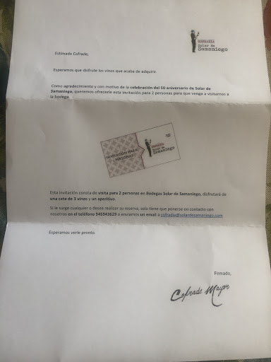 De hecho con el mal trato que he recibido 3 cofrades socios los cuales compran bastante vino y yo que ni siquiera he podido nos retiramos de esta bodega.