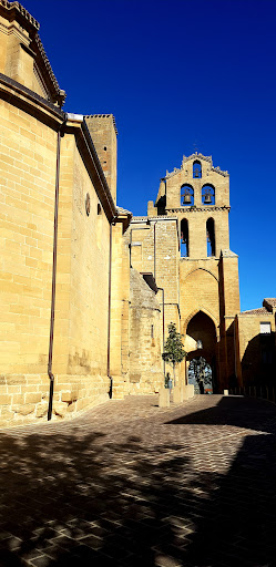 Situación: en la Plaza de San Juan, dentro del recinto amurallado de Laguardia. A 44 kilómetros de Vitoria, 18 km de Logroño, 26 km de Haro y 7 km de Elciego. Construida en varias fases entre los siglos XII y XVI, con algunos añadidos posteriores, la iglesia de San Juan es esencialmente un templo gótico, concebido en sus orígenes como iglesia-fortaleza, con uno de sus muros integrado en la muralla medieval de Laguardia y provisto de un torreón de carácter defensivo que protegía uno de los accesos a la villa. Cuenta con una valiosa portada románica de transición al gótico, con arquivoltas, columnas y capiteles esculpidos. Tuvo otra gótica que fue destruida en el siglo XVI en el curso de unas reformas. Ese mismo siglo, una vez concluidas las guerras medievales entre Navarra y Castilla, se transformó el torreón militar en el campanario actual. Entre los restantes elementos arquitectónicos y escultóricos destacan varios rosetones góticos; los relieves del coro central, con figuras tan singulares como un simio que toca un tambor, y los coros laterales y sus arcos decorados, en los que puede verse, entre otras imágenes, a un vendimiador con un cesto lleno de uvas. En el interior sobresalen también el retablo mayor, barroco, y el de la capilla del Pilar, que incluye una talla policromada de la Virgen del Pilar del siglo XIII o XIV. La iglesia fue declarada monumento...