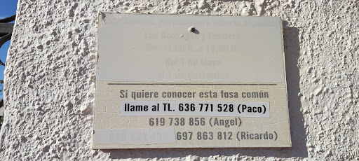 La historia reciente de España tiene muchos agujeros. Debido a la dictadura franquista por varias décadas y sucesivos gobiernos que han querido pacificar el país simplemente no hablando o mostrando sitios históricos de estos malos tiempos. Esta fosa común de 400 personas republicanas asesinadas y enterradas juntas es un testimonio de esos tiempos y como cualquier otra historia pasada merece ser recordada como ser hace en muchos otros países donde han ocurrido hechos similares. La única razón que bajo la puntuación es porque está cerrado y hay que llamar a uno de los 3 teléfonos que hay en la puerta y organizar una visita. Lo cierto es que si se deja abierto podría haber vandalismo pero tampoco tiene una valla muy efectiva para evitar que vándalos entren. Creo que debería estar permanentemente abierto y tener trabajadores que lo cuiden. Eso daría más trabajo a la zona. Por lo demás, un lugar muy interesante que creo merece la...
