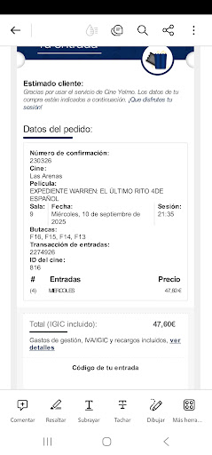 El día 5 de junio en la sesión de las 21:40 para la película Expediente Warren hubo muchos incidentes, tanto en la entrada con las filas y el acceso, como con las condiciones de seguridad de la sala ya que el aire acondicionado no funcionaba. Puse una hoja de reclamación a la cual se me contestó que la sala estaba despejada, pero que había una confusión de filas, cosa que nadie salió a organizar y que uno de sus empleados nos indico que para entrar había que hacer dicha cola, en la cola había mucha gente con la comida comprada y que por lo tanto la excusa de la gerente no tiene cabida, ya que es organización suya gestionar las filas. Para acceder a la sala tenían a un empleado con más de 150 personas esperando, tanto que hubo gente que entró y que prácticamente no comprobó si era el número correcto de entradas, y simplemente escaneo el código de lo saturado que estaba. Pero este mismo chico al salir de la sesión, estaba tirando la basura y tuvimos que esperar 15 minutos para que nos atendiera, dejando la recepción completamente sola de empleados. Además de eso, le gerente , no solo cambio de argumento con respecto a la mala ventilación de la sala, primero diciendo que estaba rota antes de entrar y el técnico estaba en ello, y después afirmando que se rompió a mitad de sesión, pero en mi reclamación me contestó que no esta rota, sino que era difícil manejar, y luego en otras reclamaciones de otros clientes, ponía que no era manejo de ella lo que el técnico pudiera hacer para solucionarlo. Además de eso, lo que nos quejábamos era de que nos prometen una calidad y confianza con respecto a las medidas de seguridad, y ella pudiendo avisar, controlar y manejar tanto la situación de la recepción como la de ventilación prefirió ofrecernos, si se puede decir así, el reembolso o una entrada para otro día, cosa que me aparece nefasta ya que han demostrado que no cumplen con las medida de seguridad ni de lejos. Eso que tanto promulgan y prometen con respecto al COVID es algo que no se ha producido en esta sesión; además está gerente, o ayudante de gerente que tanto se contradice en sus respuestas a las reclamaciones de todos los usuarios de esta noche, ha afirmado que la sala era difícil de refrescar porque estaba al completo, ¿no decía que era que estaba roto? o ¿ahora resulta que el aforo permitido no es el indicado para refrescar la sala? Además de ello, justifica esta mala ventilación con que nos ofreció dicho reembolso pero no quisimos aceptarlo. A todo ello debemos sumar que el conflicto de filas y que solo había un empleado para las entradas y que nadie indicaba que había que hacer generó una avalancha de personas para entrar y pasar su ticket generando que su empleado estuviera tan saturado que no controlase absolutamente nada más que pasar bien el ticket, y eso produjo en más de la mitad de usuarios de esa película se perdieran 20 a 30 minutos de la película, cosa nefasta por una mala organización. Por último, teniendo en cuenta la justificación de su gerente en que la gente confundía las colas, no ve en ella ninguna responsabilidad de gestionar bien eso y de mantener un orden y un buen servicio. Puede haber existido una confusión de colas por una mala señalización y poco personal, era responsabilidad de su local y empleados, no de las personas que esperaban que se les...