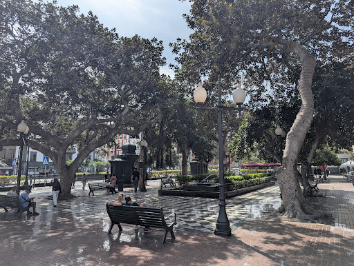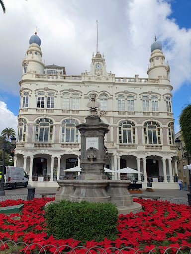 Read moreLa Plaza Hurtado de Mendoza, conocida como Plaza de las Ranas, se sitúa entre los barrios de Triana y Vegueta en Las Palmas de Gran Canaria. Su origen data de principios del siglo XIX, cuando se allanaron terrenos desamortizados para construir el Puente Verdugo sobre el barranco Guiniguada, facilitando la conexión entre ambos barrios. En 1903, bajo la alcaldía de Ambrosio Hurtado de Mendoza, se remodeló la plaza, instalando la fuente central con dos ranas de bronce y los quioscos modernistas que la caracterizan. En 1922, se erigió un monumento en su honor, obra del escultor Neri, que incluye una escultura femenina y un medallón con su retrato. Actualmente, la plaza es un espacio emblemático de la ciudad, con la Biblioteca Insular de Gran Canaria como uno de sus...