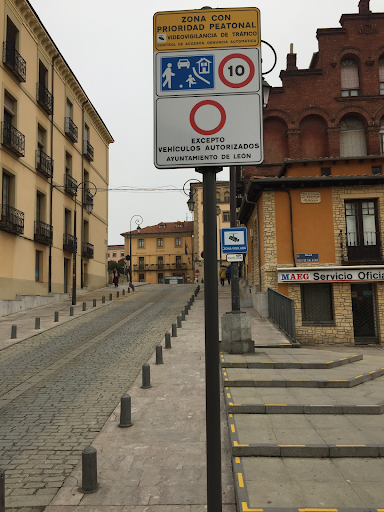 Siempre nos ocurrirá cuando circulamos en coche por lugares que no conocemos o que vamos de muy tiempo en tiempo. Hoy en día parece que las señales mutan y podemos decir que para pasar por caja, más que por el objetivo por el cual están puestas. Esto lo pongo para cuando estés en León e intentes acceder al Casco Antiguo, por el Arco de Cárcel, por el acceso a la Plaza de San Isídro, por el Arco de Ánimas, este tiene el acceso al aparcamiento subterráneo….. etc... En concreto el semáforo no funcionaba, barrera abierta. Todo perfecto para caer en la trampa, Cuando conduces la señal es prácticamente ilegible, por la letra pequeña, ni teniendo un 100% de agudeza visual. En este caso pone "CONTROL DE ACCESO. DENUNCIA AUTOMÁTICA"......, esta es la que te da la información de que no debes seguir y la que realmente te hace ser consciente de lo que te ocurrirá cuando sobre pases la línea blanca. NO PASÉIS SI NO DEBÉIS, acceder al HOTEL...., y ante la duda llamar hay un botón que pone "POLICÍA LOCAL”... Pulsar..... y consultarlo…. Personalmente puedo decir que son bastante ambles y simpáticos, bueno los que patrullaban por la Catedral. La multa ya veremos cuantos es, según la señora de la tienda TirNaNog, golosinas y regalos. Productos de León….son 70 €, solo por el hecho de pasar, si tardas mucho… no se, los policías locales me comentaron que con pronto pago, 40...
