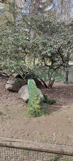 The park has two playground areas (the one further away from the pond is for older kids). The playground next to the pond has various slides (for baby, toddlers and biggger kids), swings, there is a sand pitch and parts where kids can climb. There is a pond with ducks, pigeons and beautiful peacocks. Close to the pond are some fountains, there are many grass areas and all through the park you'll find many pathsto go for a stroll.