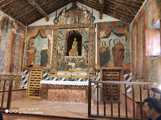 Desde fuera no se hace uno a la idea de la joya pictórica que encierra en su interior. Es una pequeña capilla dedicada a la Virgen que conserva las paredes pintadas por un maestro local en el siglo XVIII. Para los seguidores de la película: Amanece que no es poco; recordarán la escena de la iglesia rodada en este lugar, eso sí, entonces las pinturas no estaban...