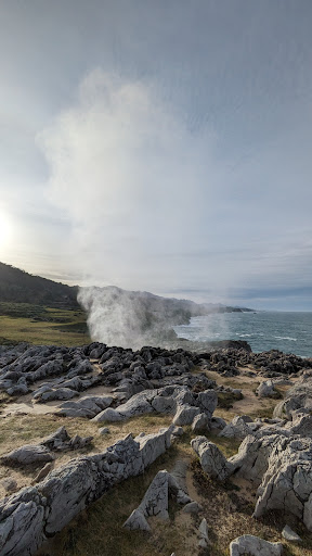 Read moreUNA MARAVILLA!! Declarado Monumento Natural del Principado de Asturias. Lógicamente sólo se puede ver activo los días de mala mar y entre 1h antes y 1h después de pleamar. No se puede acceder con carritos ni en silla de ruedas al ser zona cárstica de costa. Es el bufón más alto de todos. Merece mucho la pena acercarse a verlo, si las condiciones del mar son las apropiadas. Una pasada la cantidad de agua de mar que expulsa y a la altura que lo hace. Se produce al mismo tiempo un río con el agua que...