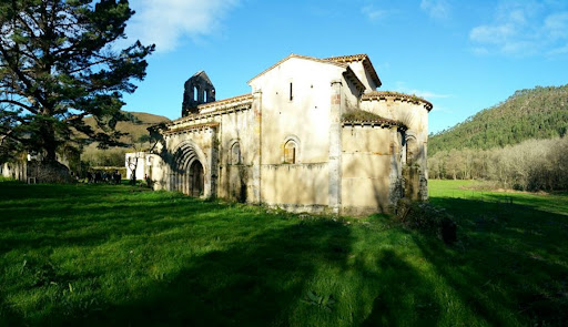 Read moreMonasterio de San Antolín de Bedón (ss. XI-XIII), en la desembocadura del río Bedón, en Naves (Llanes, Asturies). Monasterio benedictino fundado por el conde don Munio Rodríguez 'Canis' (+1024), dedicado a San Antolín de Apamea llamado Antoninus de Pamiers (453-506) -nieto del rey Teodorico I de Tolosa (418-451), de la dinastía baltinga, mártir visigodo, diácono torturado (en aceite hirviendo y arrojado al río Garona con una muela de molino atada al cuello, pero sale a flote, juicio divino positivo) y ejecutado posteriormente en el río Ariège junto a sus discípulos Juan y Almaquio, supuestamente por no aceptar el arrianismo, conmemorado el 2 de septiembre-, santo magnificado por el rey Wamba de Toledo (672-680) y por el clérigo catalán don Ponce de Tavèrnoles, obispo d'Uviéu (1025-1035), auxiliar de Adga (1013-1025) -con lo que las fechas coinciden-. Iglesia cisterciense tardorrománica (1205), planta basilical de tres naves -más alta la central que las laterales- separadas por arcadas ojivales sobre pilares y cubrición de madera, y contrafuertes al exterior; cabecera con tres ábsides semicirculares al exterior con vanos y cubiertos por bóveda de cuarto de esfera; crucero con bóvedas de crucería y de cañón apuntado. Canecillos decorados en los aleros sobre las portadas: principal u occidental de cinco arquivoltas apuntadas -antropomorfos (cazadores), aves y vegetales-, lateral sur de cinco arquivoltas -animales, vegetales-. Espadaña. Carencia escultórica de mayor empaque como reflejo de la comunidad cisterciense que la habitó. En 1531, el cenobio pasa temporalmente a depender del monasterio de San Benito de Valladolid; aunque en 1544 es anexionado como priorato al monasterio benedictino de San Salvador de Celorio (Llanes). Con la desamortización de Mendizábal (1835) tanto Celorio como Bedón fueron exclaustrados, pasto del pillaje y la injusticia. Los vecinos de Naves trasladaron los oficios, el retablo mayor, los altares y la pila bautismal a la Capilla de Santa Ana de Naves, que fue reformada como iglesia parroquial -usando como cantera el monasterio, con el permiso (1858) del obispo de Uviéu-; no obstante la Comisión Provincial de Monumentos, gestora de la desamortización, logró salvar la iglesia, y el obispo retiró el...