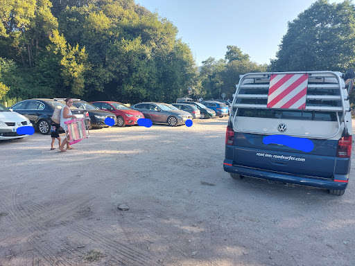 Pensando que en el centro de la explanada se podría aparcar pero no en el perímetro de la misma, nosotros y todos los demás usuarios, por la falta de información, aparcan también. El socorrista se encarga más de vigilar el Parking y llamar a la Policía, que la playa.
