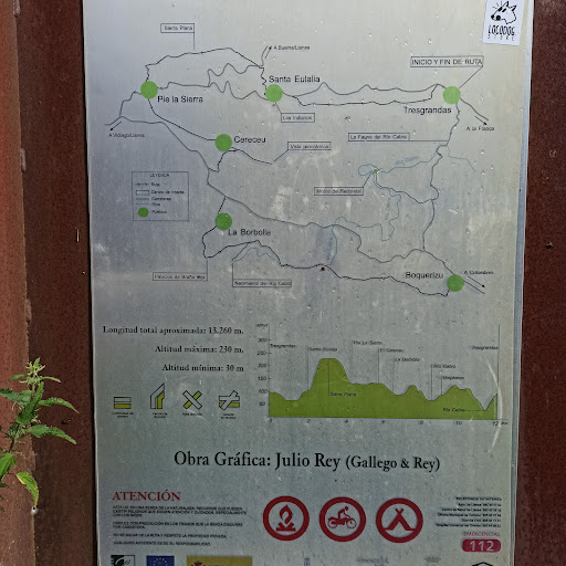Read moreRecorrido circular de unos 14 km. Que recorre los pueblos del valle y sus puntos de interés. La pena es que no pudimos completar el recorrido señalado, debido a que en el punto donde se bifurca a la derecha hacia el nacimiento del río Cabra y a la izquierda la continuación del recorrido hasta Boquerizu, no está indicado que hay que cruzar el río en un punto a unos 2 km. y qué es imposible pasar sin descalzarse y meterse en el agua hasta casi la rodilla (dependiendo de la época y el caudal). Al final te tienes que dar la vuelta hasta La Borbolla y continuar por la carretera. Lo...