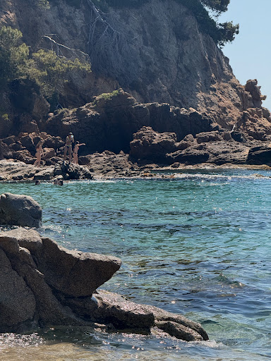 Read moreOne of my favourite naturist beaches in the Med. The setting is beautiful with smooth craggy rocks and wooded areas behind the cliffs backing on to the beach. The sand is gritty so it doesn't stick to you but is still soft enough to lie on. The water is clear and clean. Best of all you have to make the effort and WALK to it - yes WALK - horror, - you know - with your legs, although it's only a quarter mile or so but far enough to put off all the idle touroids who can't turn up in their cars as there's no nearby car park and there's also no room for concrete carbuncles flogging parasol hire, beach lounger beds, disco bars, jet-ski hire and all the other cretinous garbage that always ruins what were once idyllic beaches. There's just one bar with toilets thoughtfully...