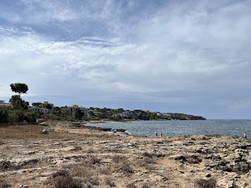 Llegué temprano para aprovechar la calma. La cala es pequeña — apenas unos 50 m de largo entre rocas — y en vez de arena abundante predomina la roca lisa con algunas zonas donde apoyarte. Me instalé en una parte algo rocosa pero cómoda, puse mi toalla bien extendida en una plataforma plana natural y respiré profundo.