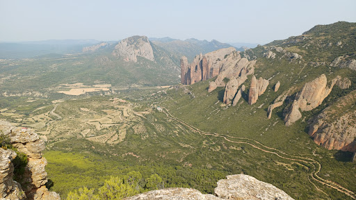 Las vistas son impresionantes, con los mallos de Riglos en primer plano y los de Murillo más al fondo.