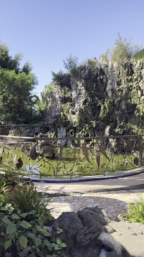 What a stunning little park located just outside city looking up to the mountains. All the gates are beautifully made with ornate ironwork detail and tiled gate post toppers and all different. Even the bins are made of the ornate ironwork. Every where you look in the first part is covered with mosaic tiles surrounded by trees and flowers and volcanic structures. Their are steps, floors and plant posts all lovingly made. They even got giant lizards covered in mosaics. It is very well kept to with park attendants working. The toilets were closed. Lots of colourful flowers and shrubs and they even got terrapins or turtles and fish in the waterfall pond. Some dead trees have been turned into plant holders. The bottom half is more open without the mosaics but has lots of fauna and play equipment and seats. Their is parking in roads nearby and most is level, with a couple of areas up uneven steps to little view points. One entrance to the side has no steps if you have mobility issues. Their are several cafe/bar nearby. Definetly visit it as it looks amazing and free entry too. Signs say no...