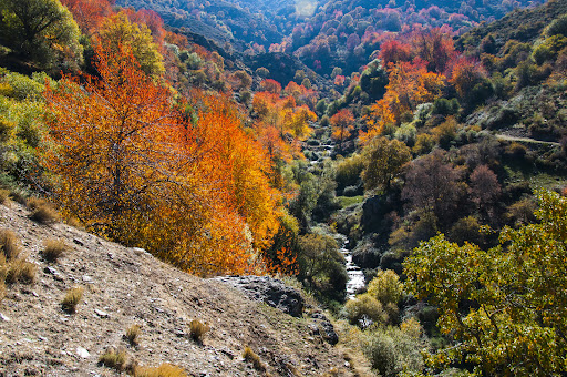 Read moreLa Dehesa del Camarate, uno de los rincones más hermosos del Parque Nacional de Sierra Nevada, alberga uno de los bosques mixtos mejor conservados de toda Andalucía. Por este motivo se ha convertido en un lugar privilegiado para disfrutar de la ‘otoñada’, un espectáculo de colores que atrae cada año a senderistas de muchas procedencias, naturalistas y fotógrafos. Se encuentra en la vertiente norte del macizo, en el término municipal de Lugros. La abundancia de agua y su orientación han propiciado una biodiversidad extraordinaria. En este auténtico tesoro de joyas botánicas se dan cita numerosas especies de árboles de hoja caduca y arbustos que ofrecen múltiples paisajes diferentes. A través del sendero Dehesa del Camarate, que discurre por una pista forestal, se realiza una visita por la cabecera del río Alhama que nos sumerge por un bosque de robles, salpicado de cerezos silvestres, arces, fresnos, mostajos, sauces y quejigos, que en otoño exhiben una variada gama de colores. El recorrido se inicia en el Horcajo, subiendo por el carril empedrado, atravesando la zona de reserva y ganando vistas a medida que se va ascendiendo. Tras casi 5 km., el recorrido finaliza en el Tendedero. Estas fotos no son...