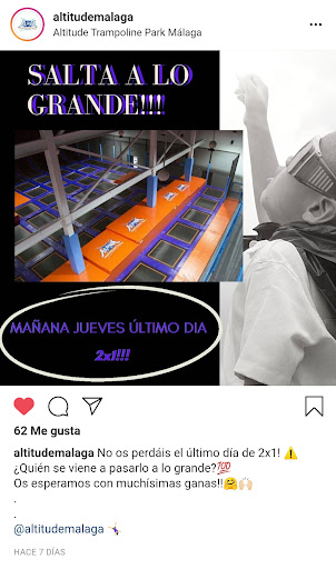 Jueves 8 de Julio sobre las 18:00. No es la primera vez que iba, pero despues del confinamiento, por lo visto, han perdido un poco el norte. Llegamos al local, y el tema mascarillas es un cachondeo, literal, puedo entender que siempre esta el que se la baja y no vas a ir corriendo a por la gente que se la baja o no lleva, lo que no puedo entender es que una persona este sin mascarilla pidiendo/ hablando con un empleado, en la barra de la izquierda al entrar, sin mascarilla y que no se le diga nada... En fin, despues de ver el panorama nada mas entrar, espero mi cola, llego al mostrador y me preguntan si tengo ficha, le digo que si, no aparezco, empezamos bien, me dicen que me tengo que volver a registar si no voy desde antes del confinamiento... Total, me dicen coge el qr de ahi, qr que no va, tengo que esperar a que me ayuden y que me digan desde que página puedo entrar, me registro. Perfecto. Vamos a esperar de nuevo la cola... Llego a mostrador nuevamente, ahora si aparezco, yo pensando, que buena tarde voy a echar con mis dos hijas. Le digo que vengo por la oferta de Instagram (adjunto foto) en la cual dice, 2x1, me dice ok perfecto. Niña de 2 años, niña de 5 años y padre, calcetines para la niña de 2, son 35€. Antes de hacer las cuentas decir que lo de sacarte los 2 euritos para la niña de 2 años porque los calcetines del bobby jump no sirven... Será que hay muchos fabricantes exclusivos en España... Vamos que te quieren sacar los 2euros y listo que no den excusas sin sentido que los calcetines son los mismo, si dicen: es norma de la empresa y punto es mejor, porque si es cierto que esta en un cartel fijo impreso, pero que te ponen su calcetín que parece que la goma viene de los bosques del Amazonas. Dicho esto viene el plato fuerte, 2x1 quitando los calcetines 33€, no entiendo las cuentas, somos 3, 2x1, 11 + 11= 22euros, me dice es 2x1 en horas, me rio y me pienso que me esta tomando el pelo, pero que no, que es real, al chico obviamente que le voy a decir, si lo han mandado a decir eso, pero vamos a ver... Dirección de Altitude, lo de la publicidad engañosa como lo llevamos... Si es 2x1 en horas, sabéis que hay que especificarlo ¿No? La foto de instagram esta ahi, si no es el descuento en el precio, lo tienes que indicar, sino lo que estáis buscando indiscriminadamente es confundir al cliente, que se desplace al establecimiento y una vez ahi, con los niños ilusionado, sabes al 99% que no te vas a ir. Bueno, ya se que me estan tomando el pelo, pero voy a dejar que me lo tomen, voy a pagar, la niña quiere saltar, pero viene lo mejor. La mayor 5 años, tiene que llevar mascarilla, lo pone en una pizarra pintada a mano. Los calcetines vale pero lo de la pizarrita... En primer lugar, estoy viendo infinidad de gente adulta sin mascarilla, pero es que según legislación vigente y publicación en BOE se indica que los menores de 6 años estan exentos de llevar mascarilla en espacios cerrados, es decir que Altitude tiene su propia ley, mas restrictiva para los menores, pero a la vez a los adultos que vienen en grupo no les digo nada... ¿Como va esto? Porque al comienzo explico que al entrar ahi la mayoría no tiene mascarillas, pero lo peor es que esta "norma" no se encuentra en cartelería firme, porque saben que es ilegal y discriminatorio, porque al igual que eso, en la pizarra pueden poner que todo el que no entre con gorro no pasa y si no han realizado la petición de derecho de admisión en esos terminos saben que no pueden hacerlo. Despues de todo esto es para poner una reclamación por cada uno de los puntos indicados, ir a consumo, sanidad y denunciarlos. Pero yo he ido a disfrutar, le doy las buenas tardes al chico y me voy al otro parque de camas elásticas que hay en una calle próxima. A ver ahora el community con que me contesta para intentar quitar credibilidad...