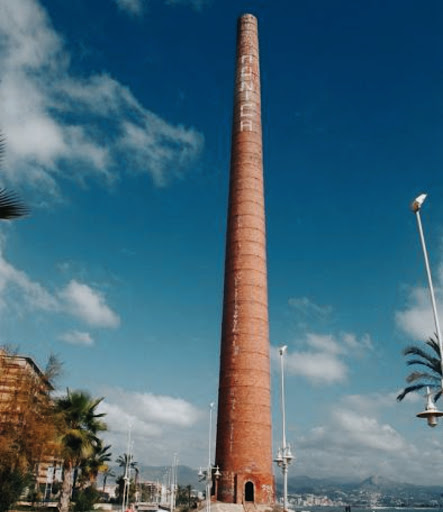 Fue construida en 1923 bajo la dirección del ingeniero alemán Barón Félix von Schlippenbach. Chimenea de la antigua fábrica de plomo de Los Guindos, también conocida como Torre Mónica, está situada en el Paseo Marítimo Antonio Banderas de Málaga.