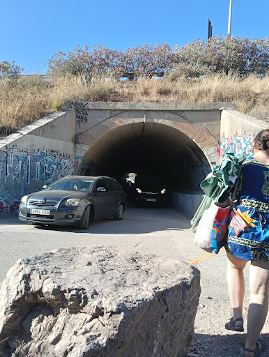 A no ser que vayas a las 7 de la mañana, difícilmente vas a poder pillar alguna de las barbacoas. Se accede a través de un túnel en el que, tiene pinta de que se trafica con ciertas sustancias cuando cae la noche. Antes de entrar al túnel tienes un descampado donde se puede aparcar cómodamente, por si no quieres jugártela a meter el coche tan adentro y que no haya sitio, pero cuidado, porque el suelo es de tierra con un polvo que te va a hacer desear comprar un coche nuevo cuando vuelvas, de lo lleno de porquería que se te va a quedar. Avispitas asiáticas (o de otro tipo, pero son más grandes que un pterodáctilo) rondando por ahí, tratando de comerse tu carne bajo amenaza de terrorismo a base de picaduras. En las duchas también hay unas pocas de las normales buscando un poco de agua, pero viendo el tamaño de las otras, estas ya casi que dan risa. El agua más fría que en el propio Nifelheim, a los 4 minutos de estar dentro ya no te preocupa la temperatura, porque has perdido la sensibilidad en todas las terminaciones nerviosas de tu cuerpo. La playa cuenta con cubos de basura, las barbacoas previamente nombradas, baños, y un señor con altavoz dando vueltas y con la macarena a todo volumen en tu oído. También puedes acceder a través del paseo marítimo a pie (buena suerte) o en bici, y comunica con el siguiente tramo de la costa. Los intrépidos pueden lanzarse desde el peñón al agua, a pesar de las indicaciones de que está prohibido (tranquilo, el vigilante no hace demasiado por impedirlo, seguramente piensa que para lo que le pagan, no merece la pena el discutir...