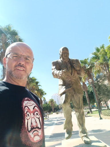Escultura en bronce y de cuerpo entero en honor del humorista y cantaor malagueño, nacido en la Calzada de La Trinidad en 1932 y fallecido en 2017. Full-length bronze sculpture in honor of the humorist and cantaor from Malaga, born in the Calzada de La Trinidad in 1932 and died in 2017. Sculpture en bronze pleine longueur en l'honneur de l'humoriste et cantaor de Malaga, né à la Calzada de La Trinidad en 1932 et décédé en 2017. Ganzfigurige Bronzeskulptur zu Ehren des Humoristen und Kantaors aus Malaga, der 1932 in der Calzada de La Trinidad geboren wurde und 2017 starb. نحت كامل من البرونز تكريما للفكاهي والكانتور من مالقة ، المولود في كالزادا دي لا ترينيداد عام 1932 وتوفي عام 2017. 全長青銅雕塑,以紀念來自馬拉加的幽默作家和吟遊詩人,他於 1932 年出生於特立尼達的卡爾扎達,並於 2017 年去世。 1932년 Calzada de La Trinidad에서 태어나 2017년에 사망한 Malaga의 유머가이자 칸타오르를 기리는 전신 청동 조각입니다. פסל ברונזה באורך מלא לכבוד ההומוריסט והחזן ממלאגה, שנולד בקלזדה דה לה טרינידד ב-1932 ומת ב-2017. Scultura in bronzo a figura intera in onore dell'umorista e cantaor di Malaga, nato nella Calzada de La Trinidad nel 1932 e morto nel 2017. マラガ出身のユーモリストとカンタオールに敬意を表して、1932年にカルザダデラトリニダードで生まれ、2017年に亡くなったフルレングスのブロンズ彫刻。 Escultura de bronze de corpo inteiro em homenagem ao humorista e cantor de Málaga, nascido na Calzada de La Trinidad em 1932 e falecido em 2017. Sculptură în bronz în cinstea umoristului și cantaorului din Malaga, născut în Calzada de La Trinidad în 1932 și decedat în 2017. Бронзовая скульптура в полный рост в честь юмориста и кантора из Малаги, родившегося в Кальсада-де-ла-Тринидад в 1932 году и умершего...