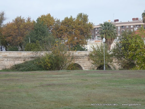 Puente Romano sobre el río Albarregas (ff. s. I A.C.), en Mérida (Badajoz, Extremadura), entre las calles Arenal de Pan Caliente y Huerta de Velázquez. Puente en arco de 4 vanos -arcos de medio punto- que salva el río Albarregas -16,5 m. de longitud que nacecen Sierra Bermeja y Cornalvo, afluente del Guadiana-, 145 m. de longitud, 7,9 m. de ancho -suficiente para el paso holgado de dos carros- y 6,5 m. de altura. Construído en el mismo tiempo que el gran puente romano sobre el Guadiana, es decir, durante el imperio de Augustus (27 A.C. - 14 D.C.), cuando la fundación de la colonia romana Augusta Emerita (25 A.C.) -por orden de Publius Carisius, legatus propretor de Lusitania (26-22 A.C.), para los milites emeritos (veteranos licenciados), bajo su mando, de las legiones X Gemina y V Alaudae en las 'guerras astur-cántabras' (29-25/22-19 A.C.)-. Situado, en paralelo al Acueducto de los Milagros, en la prolongación del cardo maximus de la colonia romana, que seccionaba la urbe de E. a W., donde iniciaba la importante calzada romana del norte 'via ab Emerita Asturicam' o 'vía de la plata' que llegaba a Asturica Augusta (Astorga, Lleón) y otra vía al W. que iba a Olissipo (Lisboa). Materiales: opus caementicium y sillares almohadillados de granito. Aunque la robusta estructura del puente es suficiente para el escaso caudal del Albarregas, se abrieron dos o tres vanos a modo de aliviaderos para reducir el empuje de crecidas puntuales. El pretil y la cornisa saliente superior se añadieron en el s. XIX para adecuar la vía romana a carretera nacional 630 o carretera de Cáceres (1863), hasta que se desvió el tráfico al eliminarse el paso a nivel del ferrocarril. Actualmente, es de uso exclusivo peatonal. BIC (1912). Patrimonio de la...