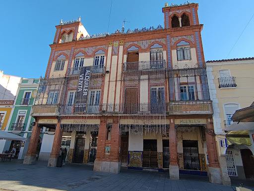 Read morePalacio de la China (1927-28), en la Plaza de España -plaza del Ayuntamiento-, 8 de Mérida (Extremadura). Según proyecto ecléctico -historicismo neomudéjar, regionalismo sevillano, modernismo- para el comerciante textil don Bartolomé Gil 'el Chino' como galería comercial -muebles, tejidos, loza-. Debe su nombre a los motivos orientales con los que está decorado. Los azulejos son del taller del maestro Francisco Casado (Triana, Sevilla). En los años del hambre -década de 1940- aquí se entregaban las cartillas de racionamiento a los vecinos por las autoridades franquistas. En 2008, "Construcciones Parejo' compró la mitad del edificio por 1,68 mill. €. para rehabilitarlo como bajo comercial y tres plantas de oficinas; la otra mitad, ya rehabilitada, estaba ocupada por un local comercial y dependencias de la Consejería de Educación. En 2016 se desprendió un pináculo, el propietario no pudo asumir el coste de la rehabilitación (2017) de las piezas dañadas de la que hizo cargo el Ayuntamiento a...