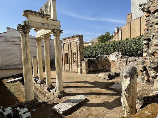 Read moreRestos del foro municipal romano Pórtico del Foro. Erigido en el siglo I. Fue restaurado en el siglo pasado sobre la base de algunos de los hallazgos encontrados en el lugar, muchos de los cuales se conservan en el Museo Nacional de Arte Romano. El monumento consta de un edificio porticado con un muro donde se albergan diversas hornacinas destinadas a estatuas encontradas en este lugar. Se encuentra en las proximidades del Templo de Diana, en uno de los dos foros que poseía la ciudad En Emérita Augusta había dos foros: el Foro Municipal y el Foro romano provincial de Mérida. El área comprendida por el Foro Municipal se desarrollaba entre las actuales calles de San José y de Los Maestros, por un lado, y entre el Templo de Diana y la calle de Viñeros por otro.