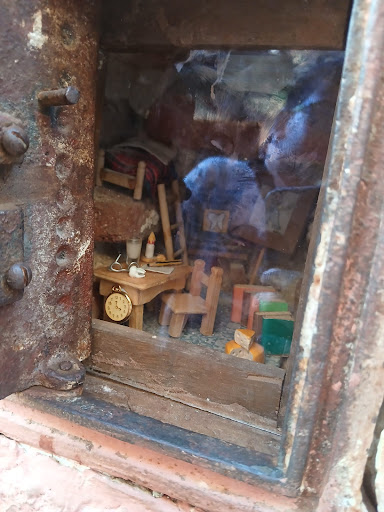 El bajo donde se encuentra, pertenece a una tienda especializada en restauración, entendiendo que son ellos los que han tenido la simpática idea de poner la Casa del Ratoncito Pérez y de decorarla según la ocasión, como por ejemplo, en Navidades.