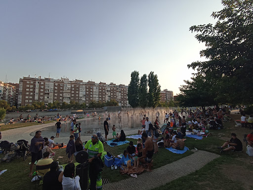 Read morePara este tiempo de calor insoportable nada mejor que venir a los chorros de Madrid Río, la verdad está bien como es normal es muy concurrido pero te venden de todo agua, cerveza , comida, y mucha gente que se trae la comida y nevera nadie dice nada no hay control de ningún tipo varios altavoces con diferentes ritmos, lo único que le hace falta es un baño publico ya que el más cercano es el del Bar y tienes que consumir para entrar, muy buena experiencia bonita...