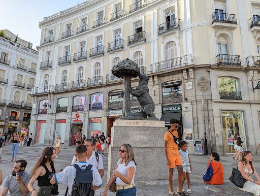 Read moreGo just to watch the crowds and stay for the fun!!! Great statue of the bear and strawberry tree, and if you look for it, the morif is depicted as mosaic in the sidewalks leading away from the plaza. Take a group shot at the medallion marking the geographic center of Spain, and the marker that all roads are measured from. We wondered why the roads were blocked off from traffic leading into the plaza and learned there was a rally. So we got to see folks coming together. This place is all about the activity. The feel radiates for several blocks in all directions and it takes some walking before you get to neighborhoods and a bit more mundane surroundings. Wowsers, lots of folks on vacay and locals, all sorts of activity and relaxation, every tchotchke imaginable depicting Spain, ham, pets, kids, football, and funny sayings. Tons of shops offering traditional Spanish jewelry, pottery, and trinkets. Go for the aromas and stay for the food and drinks. With a little sleuthing, the surrounding area is a treasure trove of alleys and old roads, shops, bars, eateries, bakeries, bread, chocolate, and desserts, so many delicious...