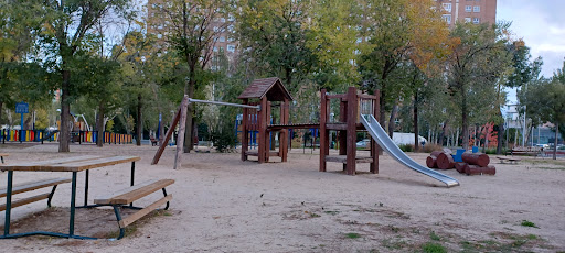 Read morePequeño y simple, de pinos casi exclusivamente, pero con un parquecito infantil en el centro y los bancos están en buen estado. Tiene en una esquina escondida la salida de metro más rara que he visto, una salida del metro de Av. de la Paz, que sale directa a la tierra del parque, apartada y escondida en un rincón que no se ve desde la calle, hay que meterse hasta el fondo del parque, casi al...