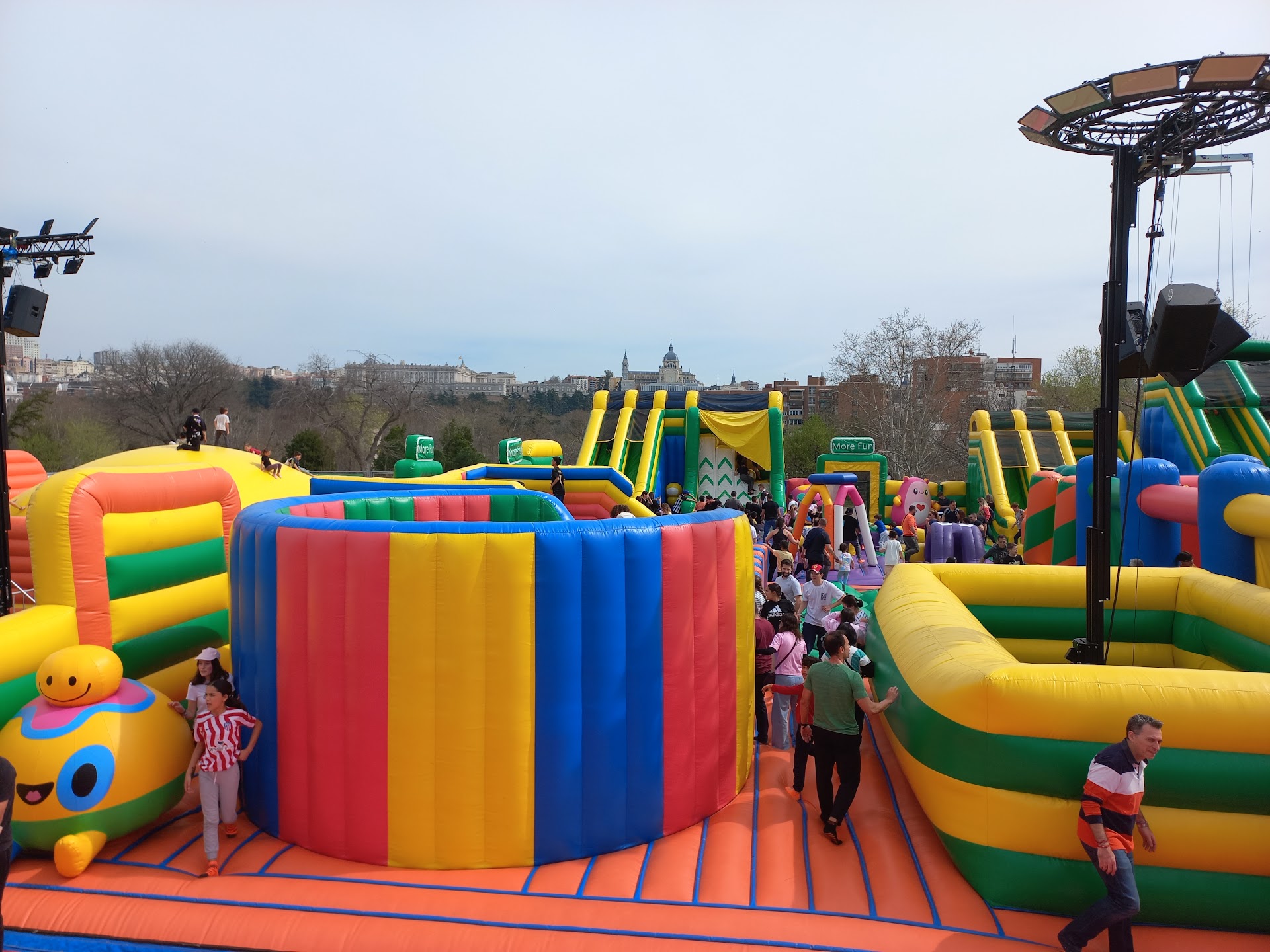 Cuando descubrí este lugar me dejé llevar por la publicidad: "¡El Parque Hinchable más grande del mundo!". Suena divertido. Así que sin pensarlo dos veces, decidí ir con mis dos hijas de 2 y 4 años a la aventura, habiéndome informado previamente que era para todas las edades. Cuando compré las entradas por internet me llevé la primera sorpresa, un precio más elevado de lo esperado. No obstante nuestra ilusión nos hacía tirar para adelante, así que saqué la tarjeta de crédito y en segundos ya tenía compradas las entradas. Una vez fuimos, las cosas empezaron a ir mal. No conocía bien el recinto, y como ibamos en coche pensé que sería fácil encontrar aparcamiento. Pero al contrario, tras dar vueltas desesperado finalmente aparqué a 10 minutos andando del recinto. Cuando llegamos tras la caminata, vimos lo peor: un sol radiante que calentaba más de lo esperado. Por suerte veníamos preparados con crema, gorra y agua. Esto último menos mal que lo llevamos, porque a los pocos minutos de empezar a saltar la deshidratación llegó en seguida. Si no tuviéramos agua hubiéramos tenido que comprar una botella a un precio irrisorio en los food trucks. Seguimos saltando y saltando. La verdad es que fue divertido, pero tuve que estar muy atento de que ningún adulto alocado cayera encima de mis hijas aplastándolas, ya que el aforo era excesivo. En definitiva, la idea es divertida. En condiciones atmosféricas mejores lo hubiéramos pasado mejor, y con menos gente hubiéramos podido hacer más el ganso. Es por ello que no repetiría la experiencia, aunque sé que si no lo hubiera probado me hubiera quedado...