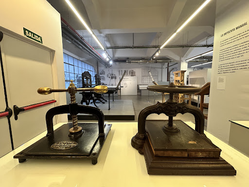 Read moreInexplicablemente es un lugar poco concurrido, aunque esto solo más agradable la visita. Tienen una colección deliciosa de todo tipo de técnicas y maquinaria de imprenta y encuadernación. Tórculos, prensas, linos, xilos, plomos... El sueño húmedo de Gutenberg. La expo temporal (la de la escritura asiática, cuando fui yo) es parte del fondo del propio museo y, aunque breve, es más que interesante. Hay una sección con minervas y demás en pleno uso, separada por un cristal. Desconozco si es el taller de restauración o donde confeccionan encargos. En cualquier caso, el visitante no parece invitado. Asumo que hacen cursos para aficionados, profesionales y niños. Si no fuera así, ya tardan. El único pero es que, mientras que en otros lugares la tienda de regalos es apabullante y prefieres evitarla, aquí no hay apenas nada concreto disponible para adquirir. Cuatro volúmenes de temática tangencial que no tienes claro si son de consulta o para la venta. Será el calor... O las ganas. La bienvenida te la da un segurata majete, aunque no sé si es lo suyo, puesto que un lugar así debería ser un chorreo constante de imberbes curiosos dirigidos por docentes expertos y entusiasmados. Indispensable para enamorados de la edición, de la tinta en general y de la tipografia en particular. Entre pitos y flautas, y porque me da la gana, le plantaría un 11 sobre 10 en Grotesque Extrabold ribeteado con pan de oro sobre marroquinería. ¡Vayan sin dudarlo! Hay un sereno con chuzo incluido en la puerta, que es lo que le da calidad a...