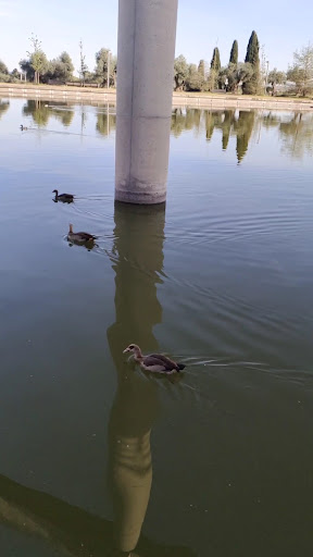 Read moreLago artificial realizado con hormigón, de trazado rectilíneo, anguloso e irregular, que cubre una superficie aproximada de 30.000 m2. Es "cortado" de este a oeste por un puente que forma parte del característico anillo del Parque. En su extremo norte, para salvar el desnivel del terreno, dispone de muros de más de 10 metros de altura, mientras que en su parte inferior se encuentra excavado bajo la rasante. El agua, procedente de canalizaciones subterráneas, no circula en su interior. Ofrece multitud de perspectivas gracias a los componentes arquitectónicos dispuestos en su interior o en su cercanía. Está permitida la pesca en el lago, que cuenta con una notable población de carpas, cumpliendo la normativa indicada en los carteles...