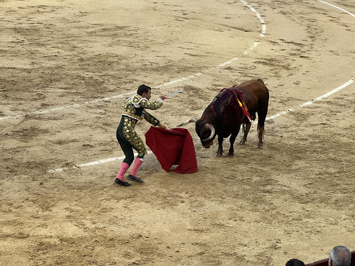 At first, it was almost misleading. The bull entered the ring full of life—alert, energized, almost joyful in a way. It reminded me of a big, playful dog, chasing the flag with a kind of innocence and vitality that was tragically beautiful. He had no idea what was coming. And as an audience member, neither did I. The first few minutes felt theatrical, even a little surreal, but then it quickly turned into something much darker.