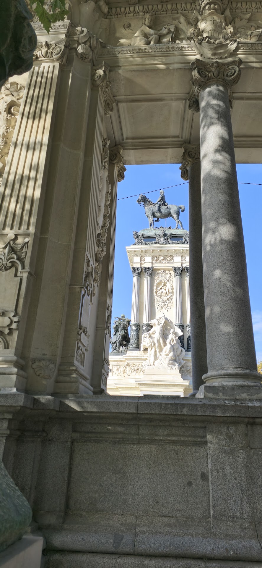 Die Details des Denkmals sind beeindruckend: Reliefs zeigen Szenen von Alfonso XII.‘s Regentschaft, darunter die Wiederherstellung der spanischen Monarchie nach turbulenten Zeiten. Die Figuren unterhalb des Reiterstandbilds – allegorische Darstellungen von Frieden, Fortschritt und Patriotismus – wirken, als könnten sie jeden Moment mit einer pathetischen Rede beginnen.