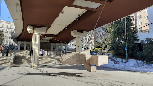 Entre sus pilares esté instalado el Museo de Escultura al Aire Libre de Madrid. Inaugurado en 1970, fue el primer museo de este tipo que se creaba en España. Probablemente la escultura más conocida de todo el museo sea la de Eduardo Chillida, denominada oficialmente Lugar de Encuentros III. Fue la primera obra realizada en hormigón armado por el escultor, y tiene la particularidad de estar suspendida a 70 cm del suelo. Estuvo expuesta en París y Barcelona, y se acabó convirtiendo en un símbolo de la defensa de la libertad. Junto a la Sirena varada o suspendida de Eduardo Chillida, están reunidos Martín Chirino, Alberto Sánchez, Julio González, Joan Miró, Andreu Alfaro, Pablo Palazuelo, Manuel Rivera, Gustavo Torner y Pablo Serrano,...