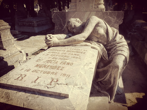 LUX AETERNA En el silencio, que el campo santo, custodiaba, el descanso de miles héroes anónimos, y otros personajes celebres, que nos dejaron , la huella , en la historia , del pueblo. Un museo de arte al aire libre, arte fúnebre, mil caras diferentes de represantar, el dolor, el duelo , las mil caras de la muerte, claramente dicho, el patio de los ausentes, que vez en cuando reciben visitantes, a mi me transmite paz y calma, que el alma busca, en tiempos de crisis, personales, cuando el que esta aqui , es un ser querido, duele ese vacio , que nos deja. No debemos de pensar que se murieron . Su alma, fue liberada, y fue en busca de la luz. Estan vivos en nuestro corazón, y alla, donde vayamos, estarán ellos, como guardianes , de nuestros sueños, esos compañeros invisibles. Es menester, poner un aire desenfadado, a estos santos lugares, confesionarios , donde , nos desahogarnos , con nuestros seres queridos , a quien , nos escucha, sin regañarnos , por nuestros Errores, cometidos, es necesario, PERDONAR, OLVIDAR Y PASAR PAGINA, marcharse, sin dejar cuentas pendientes, antes , de abandonar este paraíso terrenal. La vida es sabia, lo que se da se recibe,.”EN EL ATARDECER DE LA VIDA , NOS EXAMINARAN DEL AMOR”-ASI REZABA EL MISTICO DEL SIGLO XVI –SAN JUAN DE LA CRUZ- indiferentes pasan por nuestra vida porque decía el poeta JORGE MANRIQUE-“LA VIDA SON LOS RIOS, QUE VAN A PARAR AL MAR , LOS MÁS GRANDES Y MAS CHICOS TODOS VAN A PARAR AL MAR,EL MORIR “-coplas a la muerte de mi padre. Todos los poetas, trataron el tema de la muerte, como lo sentía su alma, a la llegada del otoño, con su melancolía, el mes de Noviembre, mes de rendir homenajes a nuestros seres queridos. Admiro el arte del arte, que escultores, cincelaron su expresión del duelo, el poder del dinero, mausoleos, poetas, pensadores, artistas, burgueses, y gente humilde , descansan , en sencillas sepulturas. El dinero, era majestuoso, moneda , que hace rodar el mundo, pero , no lo compra todo, en medida, es bueno, en exceso corrompe a la humanidad, peleas, guerras, destruye la paz y la harmonia en las familias , de todas las clases sociales . En el siglo XVII, en el arte barroco, hay un cierto tenebrismo, y culto a la muerte, ,me causa respeto esos cuadros oscuros, con esqueletos, recordando las películas de miedo. DE CORONAS DE LAUREL, FUERON , OFRENDADOS , LOS CAIDOS , POR LA PATRIA, GANARON LA PALMA DEL MARTIRIO, SANTOS Y SANTAS DE DIOS, , COMO VALIENTES DERRAMARON SU SANGRE, PARA SALVARNOS .HONOR Y GLORIA, VICTORIA , POR LUCHAR EN LA VIDA,PARA SALVARNOS LA VIDA , A NOSOTROS .Otros mueren de manera dolorosas, epidemias que asolaron países, en Europa, gracias a los biólogos y científicos, encontraron vacunas contra epidemias, victimas de la vilencia de genero, y otras desgracias, que prefiero no hablar.Existe la costumbre de dejar escritas, palabras de condolencias, en un libro,que algunas familias exponen en el velatorio del familiar, un recuerdo, de los que asistieron a despedirse del difunto. En los epitafios, podemos encontrar rica literatura, breve, . Elègias , escritas al ser querido,escritas por poetas famosos, no dejan de ser arte y literatura fúnebre, salmos y himnos, cantados, tocados , por músicos, . REQUIEM, MISERERE Y OTROS MENESTERES.