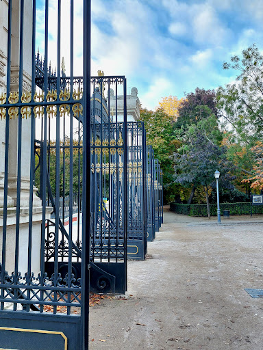 El diseño arquitectónico de la puerta es elegante y clásico, en perfecta armonía con la belleza del parque. Al cruzarla, te encuentras con amplios caminos rodeados de árboles, ideales para pasear, hacer deporte o simplemente relajarte. Además, es una de las mejores rutas para llegar directamente al Estanque Grande y al Monumento a Alfonso XII, dos de los puntos más emblemáticos del Retiro.
