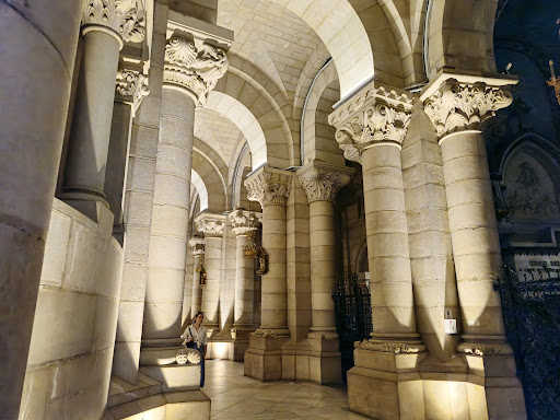 Die Krypta ist ein beeindruckender Raum, gestützt von über 400 romanischen Säulen, jede mit einem einzigartigen Kapitell. Es ist ein Kunstwerk für sich, denn die Säulen erzählen Geschichten – von biblischen Szenen bis zu floralen Mustern, die die Künstler damals mit unglaublicher Präzision eingraviert haben.