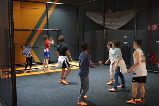 El horario que teníamos era de 2 horas y 15 minutos (recordemos... más de 600€ de factura), una vez que los niños acaban de saltar, entran en la sala y los sientan en bancos pegados a la pared, no había sitio para todos así que algunos se tienen que sentar en el suelo literalmente, y todos con la bebida entre las piernas y algunos comiéndose el perrito sin mesas para apoyar, al final después de prácticamente discutir y ya enfadados, pusieron las mesas que tenían apoyadas en la pared de forma que sobre todo los más pequeños pudieran apoyar los platos y los vasos, añadiendo también (después de reclamarlo) algunas sillas más pero nunca hubo sitio para todos, con todo el tiempo que esto llevo, restando claro del tiempo pagado del cumpleaños. Si reservas y pagas un cumpleaños para 30 niños la sala ya debe estar preparada con las sillas y sitio para todos y cada uno, los snacks puestos y la bebida preparada (la tuvimos que servir nosotros porque solo había dos monitores y solo en algunos momentos, la mayoría del tiempo solo una )