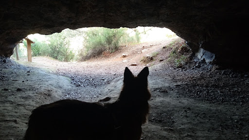 Ahora en serio. El acceso es un camino que discurre por una vaguadita. Y el camino de ascenso es como todos: largo y desesperante; con un tramo de guijarros sueltos. La cueva.... es una cueva sin más. Amplia pero sin gran cosa que mostrar. Únicamente una filtración de agua que el sentido común impidió que probase, aunque me quedé con las ganas. Agua pura de rocas.