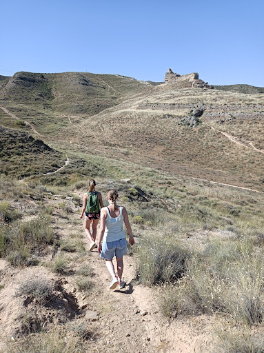 Muy sorprendido con este importante castillo sobre la vega de la Huerva. Engloba los restos de un poblado medieval con su muralla, destacando su serpenteante entrada, y el propio castillo. El pueblo está muy destruido y lleno de maleza pero se puede caminar entero. La muralla destaca por conservar algunos vanos y multitud de cavidades internas interconectadas. Sobre el propio cerro se ve la torre del homenaje, que solo permite ver unas paredes desnudas y erosionadas. Para subir a ella solo hay que rodear el cerro por el camino inferior hasta que llegas a la abertura natural del mismo, en el lado que mira hacia Botorrita. Mucho cuidado por rodearlo por el Sur ya que apenas queda camino y te puedes caer por la ladera. Al acceder a la cavidad se ven dos pasadizos con escalones por los que se sube a la zona más alta. Hay un tercer espacio a la derecha mucho más vertical y sin escalones por el que no se puede subir. Arriba del todo tienes la mejor vista de la vega y de la propia torre, en un espacio con todavía restos del muro de tapial que lo rodeaba, y un aljibe. Realmente sorprendente. Como punto negativo señalaría la dejadez que sufre, sin un solo cartel informativo ni protección de...