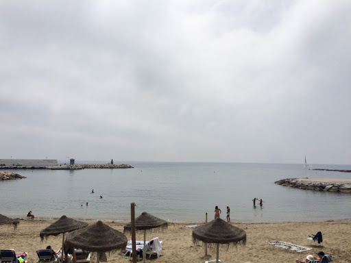 Nice, clean and sandy beach. There are chairs available for Eur 8 per day with very friendly staff (take a ticket when you pay so you can go for lunch and return). But the sand is also lovely to enjoy if you don’t want to spend money on the chairs (I preferred the sand actually). There is a little beach bar for beer and lots of restaurants in the very close area. I was here alone, as a female and felt very safe. There are couple of street sellers just above the street selling nice designer bags. The picture is taken from the very left side. As you walk along, the stones get less and less. Beautiful and safe for a early morning walk. I will come back here again....
