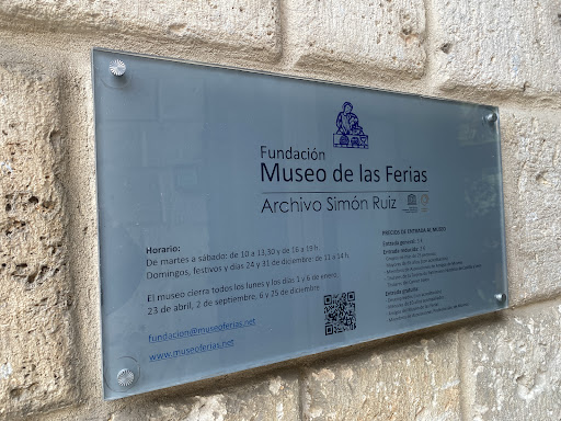Museo de las Ferias (2000), en la calle San Martín, 26, donde la desacralizada iglesia de San Martín, de Medina del Campo (Valladolid). La Fundación Museo de las Ferias -que desarrolla una muy amplia acción cultural en Medina- es la fundación municipal que lo gestiona con aula didáctica centrada en el comercio, las ferias y mercados de los ss. XV y XVI, en general y de Medina en particular, con gran cantidad de objetos patrimoniales realmente impresionantes, archivo documental desde el s. XV, biblioteca con 10.000 volúmenes. Están aquí también: 1. el Archivo Simón Ruiz, que se compone del archivo personal, el archivo comercial y el archivo del hospital general (1591) que fundara el comerciante y financiero castellano don Simón Ruiz Embito (1525-97) y 2. el Archivo Municipal de Medina del Campo, con abundante documentación histórica entre...