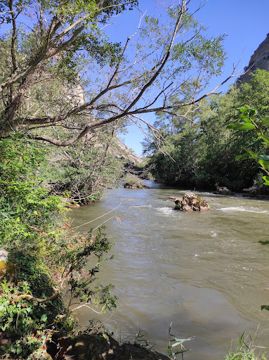 Read moreHemos realizado la senda, hasta cuatro km desde el aparcamiento,en el que cuando llegamos,estaba casi lleno unos 8 vehículos y otros 8 en la entrada del camino.Comenzamos por la senda que es de tierra y arena de río toda ella a la sombra de un bosque típico de la zona muy bonito,es camino esta despejado y limpio marcado con los postes y pintura en los árboles identificando la ruta por el n°.Recorridos unos dos Km. te encuentras con la primera pasarela para salvar una gran roca en la orilla,poco después hay que pasar otra un poco más larga bordeando las rocas del desfiladero,donde se puede ver el curso del rio correr por el desfiladero, dos Km más y digo la vuelta después de una hora recorriendo el cauce del rio,para volver,varios selfis,en las pasarelas ,y a la llegada,a las mesas en el aparcamiento parada para un tentempié, descanso y regreso a casa,un día muy entretenido,en la...