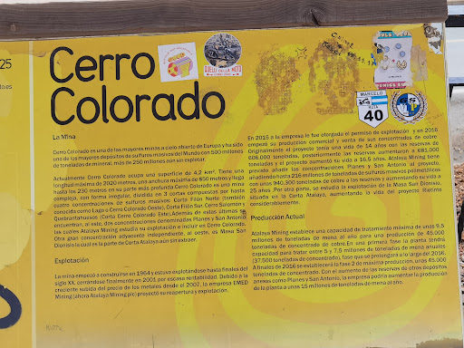 Read moreMirador de la mina del Cerro Colorao, de vuelta de la gruta de las Maravillas y a la salida de Rio Tinto hay un acceso al mirador, de tierra con muchos baches pero corto, vale la pena parar y contemplar esta gran mina a cielo abierto, es tan grande que los monstruosos dumper que transportan el material parecen de juguete en el fondo de la mina subiendo hacia el acopio. El paisaje es tan majestuoso e impresionante que te sientes insignificante ante estas vistas. no pudimos entrar al museo porque estaba cerrado pero con esta parada ya nos quedamos mas que satisfechos. Por lo que pudimos ver en el aparcamiento de la mina esta explotación reabierta hace unos años da trabajo a cientos de personas. Visita muy...