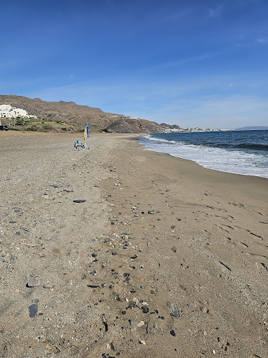 Buena playa para ir con perros ya que es una playa canina y no suele ser muy concurrida. Es una playa de piedras y arena. Tiene un parking muy amplio prácticamente al lado, también hay papeleras y un chiringo del otro lado de la misma playa (pasando el castillo). Es comoda incluso para humanos. Como todas las playas de la costa de Almería si no hay viento ni corrientes podemos encontrar un buen plato y otro punto a favor es que se hace buen pie, es decir, no es honda tan rapido como la...