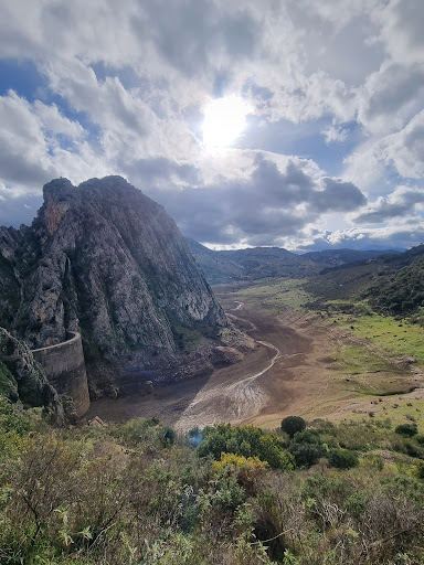 Lo primero que encontraremos durante el sendero de acceso a la Cueva del Hundidero será el pantano de los Caballeros y su presa. La construcción de esta presa se inició en 1923 y tiene una altura de 83 metros.