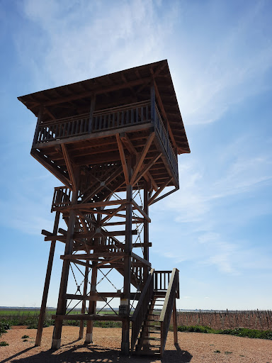 Seguimos nuestro recorrido con el coche y si vimos los flamencos en una zona donde el carril se aproxima más a la laguna. Una vez recorrido lo largo de la laguna comenzamos a rodearla pero la vuelta ya es por un carril muy alejado de la laguna, incluso entre el carril y la laguna hay parras sembradas, por lo que no se ve nada, así que de recorrido circular nada de nada. No vimos tampoco pasarelas y el observatorio elevado está al final muy muy alejado de la laguna, casi un poco de...