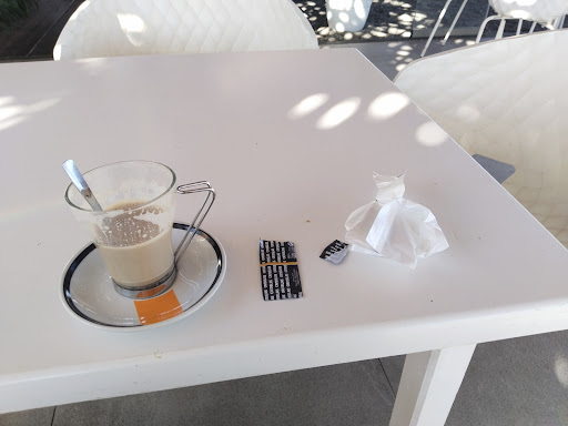 Básicamente: servicio perfecto, el chaval era súper amable, y como tengo fuerza increíble (irónicamente hablando: no existe), pues me llevaron el café a la mesa. También me regalaron 2 sándwiches de helado; tenía lo suficiente para pagar uno, pero no, me rechazaron el pago. Regalo de la casa, supongo.
