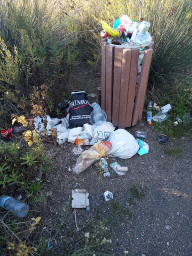 Por desgracia, hay una gran cantidad de basura tanto en la arena como en la vegetación previa. Hay una sola papelera que no recogen con la frecuencia suficiente, acumulándose a su alrededor gran cantidad de residuos. Por otro lado, al estar cerca de un puerto hay bastante contaminación acustica y el agua no está excesivamente limpia.