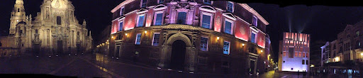 Todas mis fotos corresponde a mi visita del pasado jueves por la mañana, momento en que el patio interior se podia visitar. Este, es uno de los edificios mas bonitos e interesantes de la ciudad de Murcia, constituye junto a la fachada de la Catedral de Santa Maria un magnifico conjunto en la plaza del Cardenal Belluga. Su preciosa y colorida fachada, en un tono rojizo, da a dicha plaza. Aqui esta la puerta, que nos lleva a un patio interior de corte neoclasico, y que tiene dos plantas. Desde el patio, se distribuyen el resto de las dependencias del edificio. Por la parte mas proxima al rio, su exterior tambien es muy interesante, una parte da a la plaza de la Glorieta de España y el resto da a la Avenida...